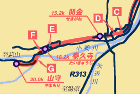 この橋梁跡の先のD地点にも、美しいコンクリートアーチ橋があって、平成7年夏にはその上をおそるおそる散歩したりしたものであったが、半年後訪れたときには跡形もなく撤去されてしまっていた。(そのため写真に残さずじまいに終わってしまった・・・残念。)